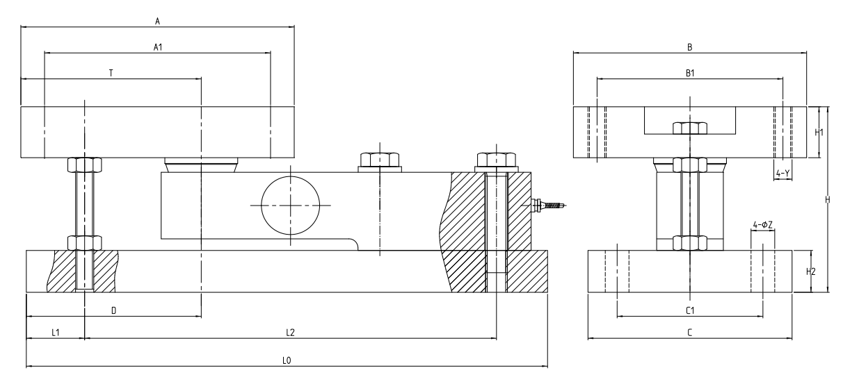 型號(hào)  | 量程(t)  | A  | A1  | B  | B1  | L0  | L1  | L2  | C  | C1  | H  | H1  | H2  | T  | D  | Y  | Z  |