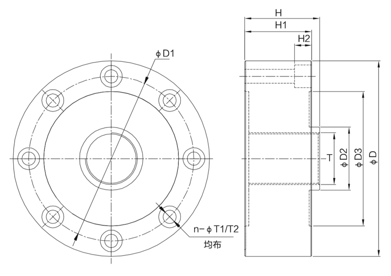 型號(hào) | 量程(t) | D | D1 | D2 | D3 | H | H1 | T | T1 | T2 | H2 | n |
