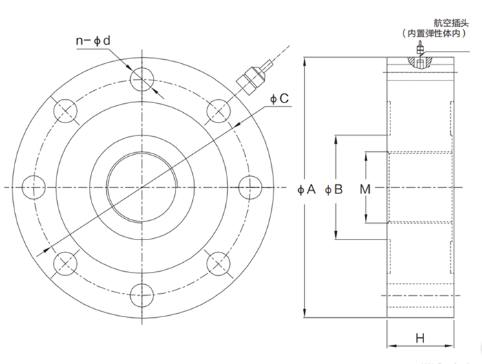型號  | 量程(kN)  | 量程(t)  | M  | A  | B  | C  | H  | n-фd  |