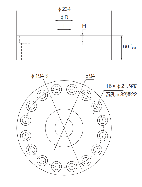 型號  | 量程(kN)  | 量程(t)  | D  | T  | H  |