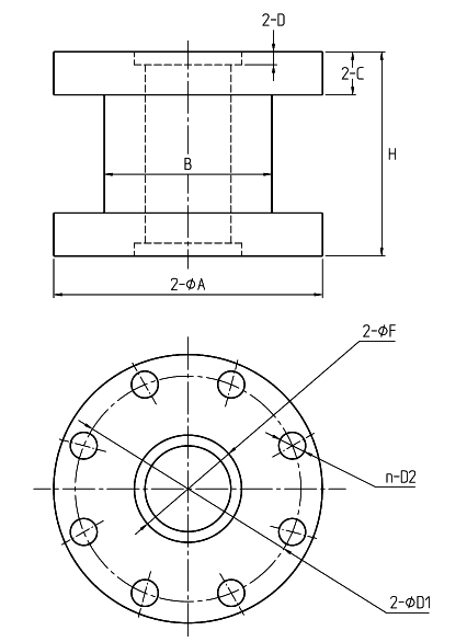 型號  | 量程  | A  | B  | C  | D  | D1  | H  | D2  | n  | F  |