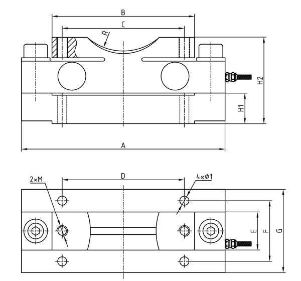 型號  | 量程(kN)  | 量程(t)  | A  | B  | C  | D  | E  | F  | G  | H1  | H2  | M  | R深  | φ1  |